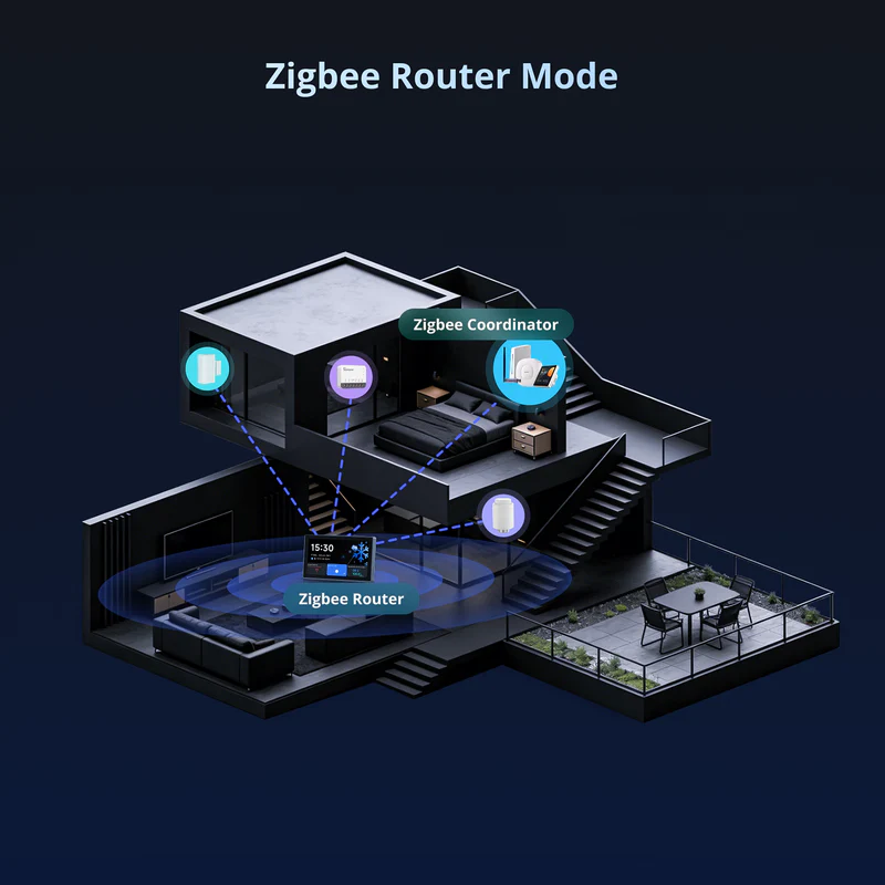 【Zigbee Hub Built-In】 Add Zigbee devices in batches directly from the screen. With Zigbee 3.0 protocol, enjoy stable, wide-range connectivity. Sub-devices can be voice-controlled via Alexa, Google Home, and others.