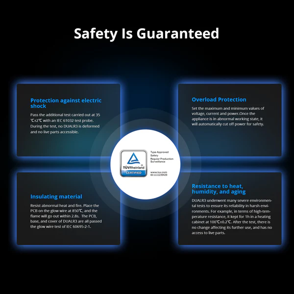 【Certified Safety & Reliability】Built with safety in mind—certified by TÜV, CE, FCC, and RoHS standards. It delivers stable performance and peace of mind.