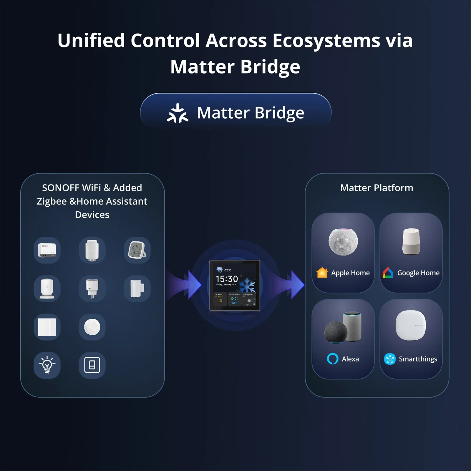 【All-in-One Control】NSPanel Pro supports unlimited SONOFF devices—from smart lights and cameras to sensors and switches. Future SONOFF devices will also be compatible, ensuring long-term scalability.