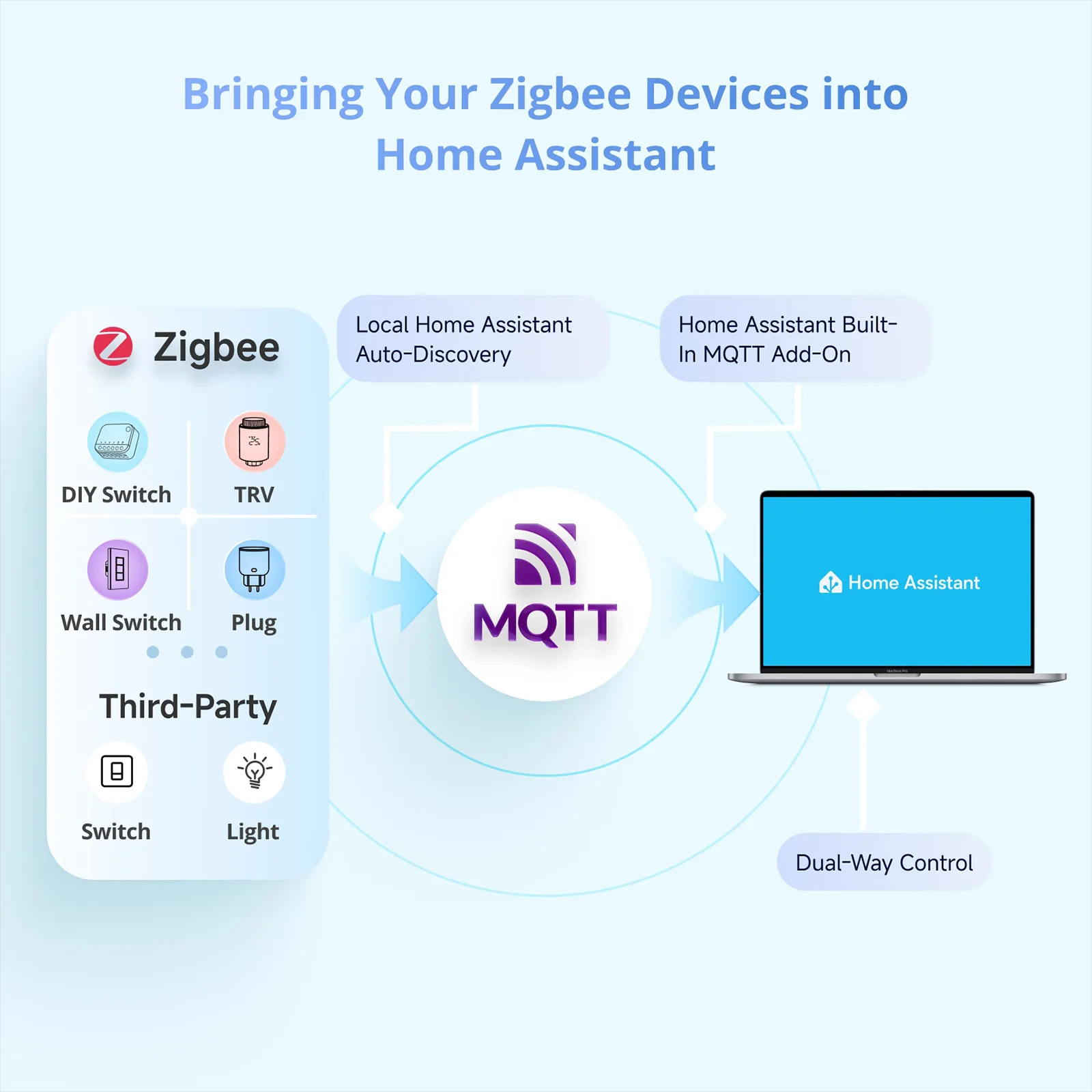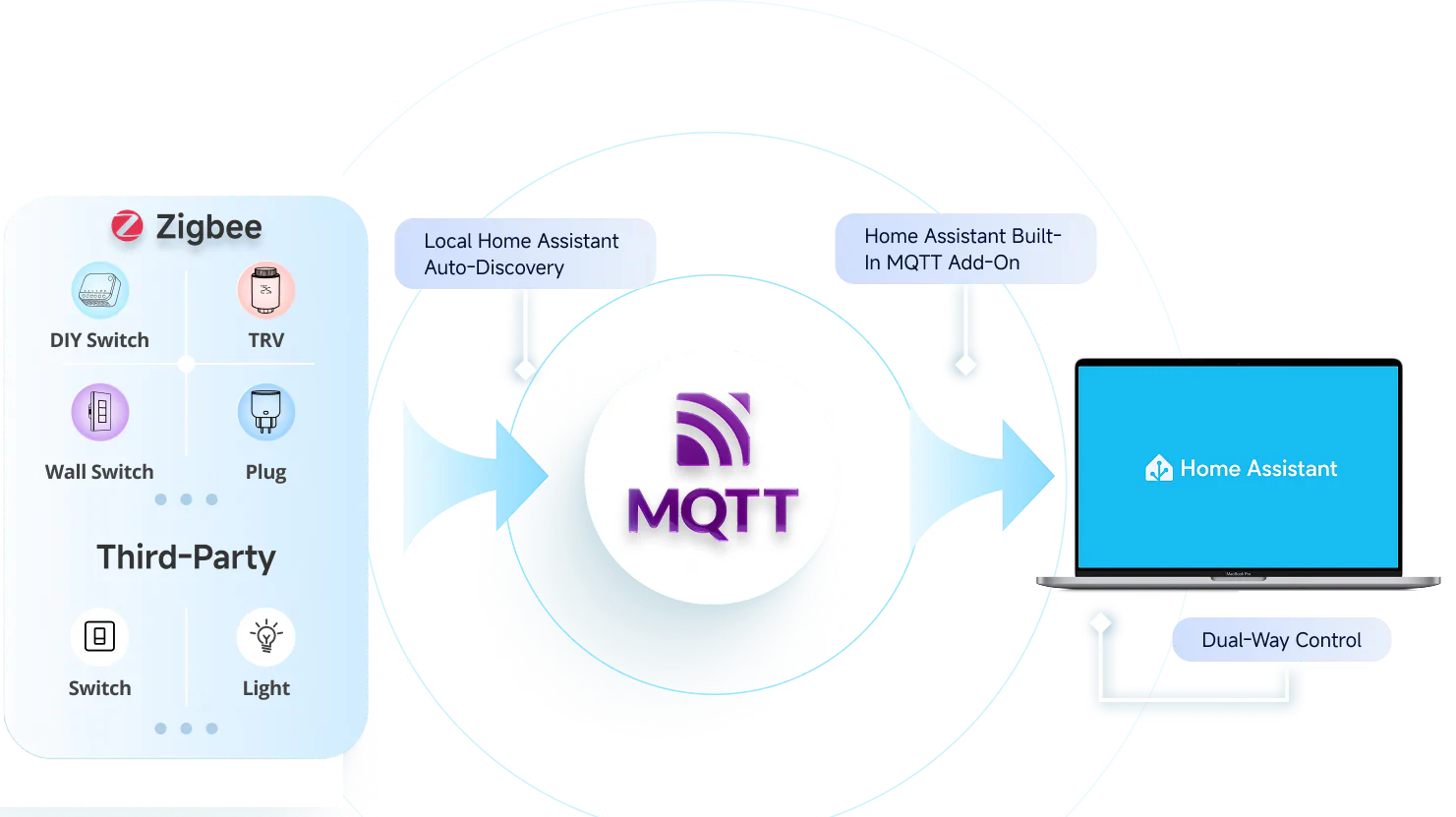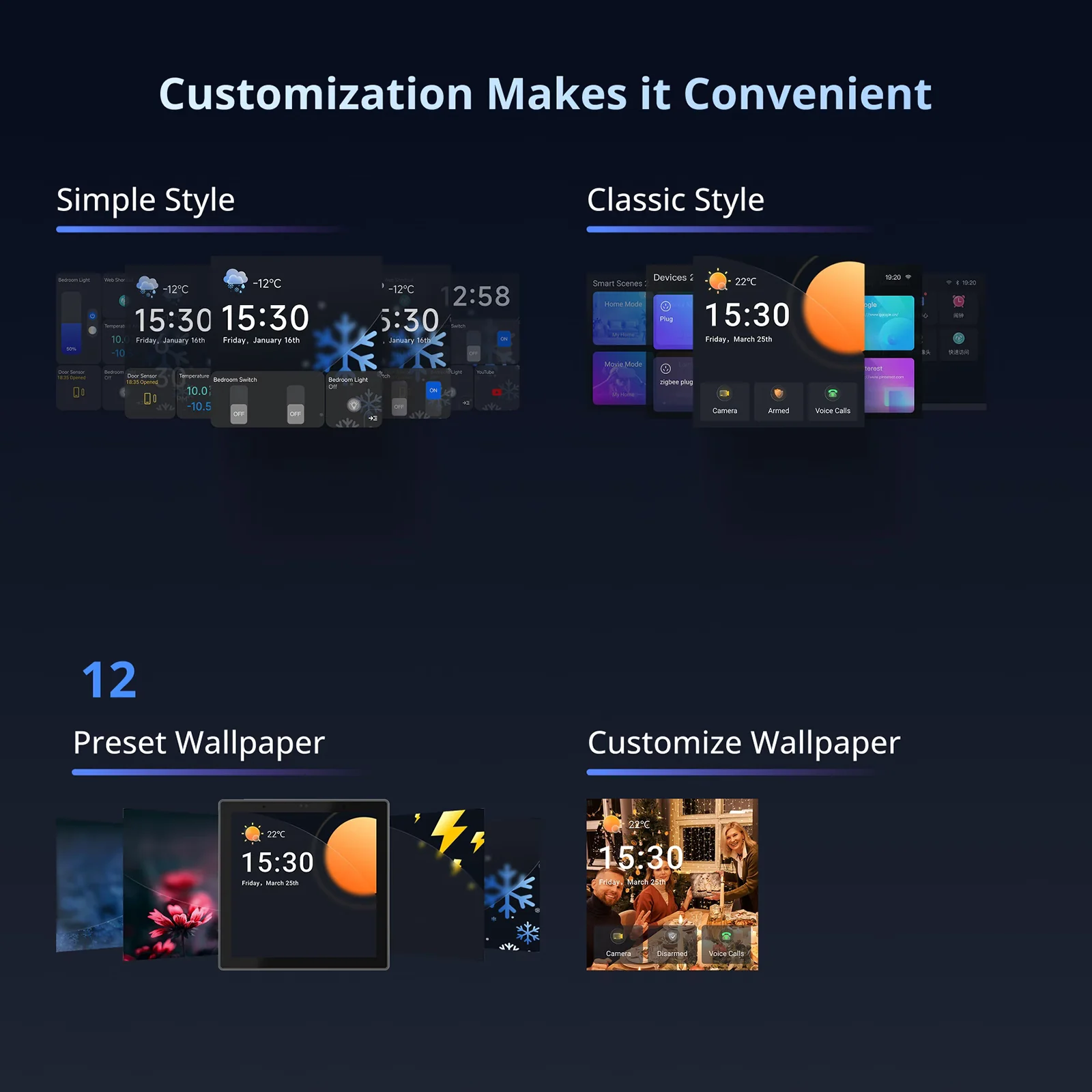 【Built-in Zigbee Hub】Easily batch-add Zigbee devices via the touchscreen. The standard Zigbee 3.0 protocol ensures stable connections and wider coverage. The added sub-devices can be voice-controlled via Alexa, Google Home, and more.