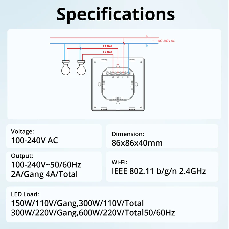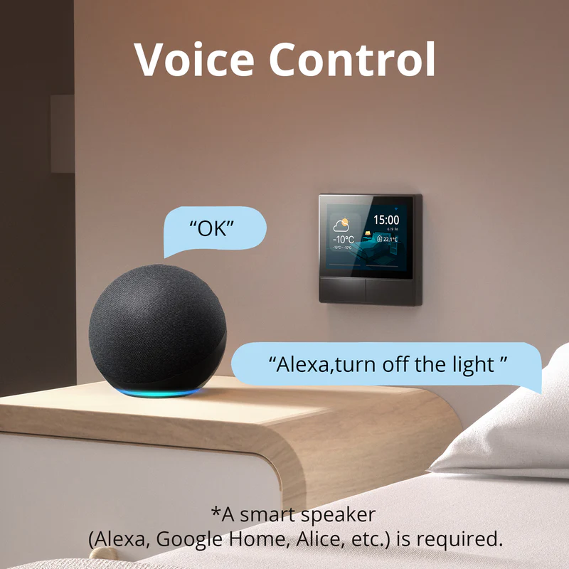 【Flexible Control Options】Control NSPanel via dual-channel switches, the touchscreen, or the eWeLink app. It also supports Alexa, Google Assistant, Alice, and Siri Shortcuts for effortless voice control.