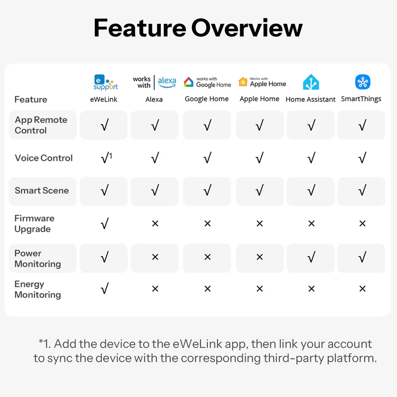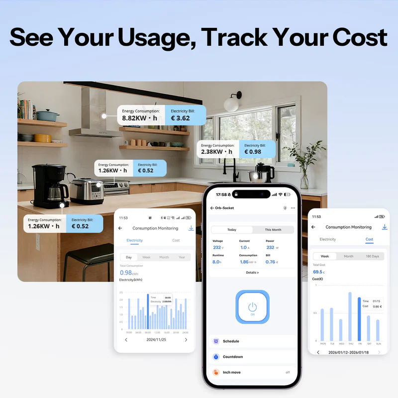 【Matter-Compatibility】 Built on the Matter protocol, SONOFF EU smart wall sockets (Type F / Type E) enable seamless interoperability across brands and devices, and compatibility with major smart home platforms such as Alexa, Apple Home, and Google Home—creating a more open, unified smart home ecosystem.【Real-Time Energy Monitor】 Smart wall power sockets accurately track power consumption and present it through intuitive visual charts. Supports historical energy data review, with one-tap reset when replacing appliances for clear, precise monitoring.【Electricity Cost Tracking】 Customize your electricity rate to generate detailed bills automatically. Smart wall outlet visualizes energy costs and usage trends in clear charts—so you can understand your power expenses at a glance.【Intelligent Overload Protection】 Built to European standards, this 16A 250V wall socket can automatically cut off power when current, voltage, or wattage exceeds preset safety thresholds, ensuring reliable overload protection and enhanced electrical safety at home.【Overcharge Protection】SONOFF smart wall socket monitors charging status and automatically powers off once devices are fully charged, reducing battery wear while improving safety and energy efficiency.