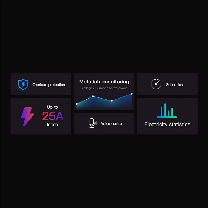 With a maximum output of 25A / 5500W, POWR3 is perfect for high-powered devices like water heaters, HVAC systems, and other equipment. Also ideal for use as a dedicated room-level energy meter. Track active power, voltage, and current of connected appliances directly in the eWeLink app. Stay informed and manage electricity usage with accurate live data and historical insights.