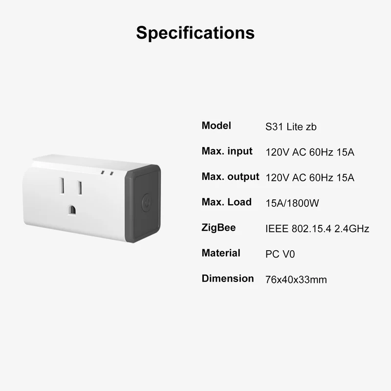 SONOFF S31 Lite zb Smart Plug US Type Zigbee Version