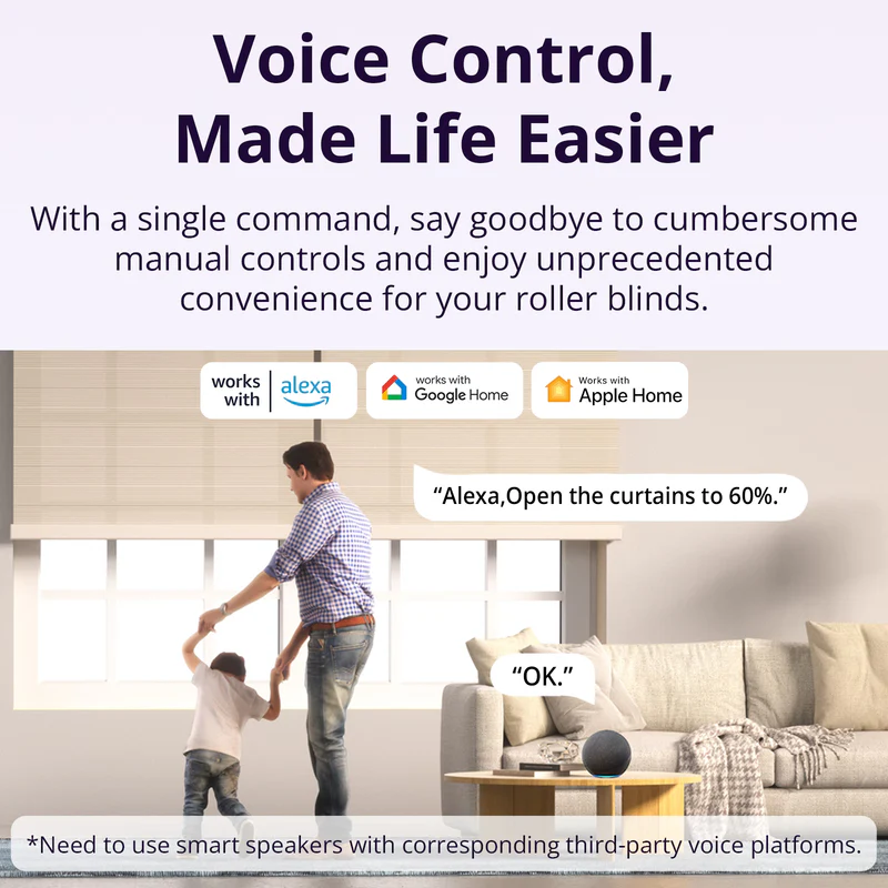 【Matter Compatibility】This curtain retrofit device ensures compatibility with multiple platforms and their devices, breaking down the ecological barriers with third-party platforms.