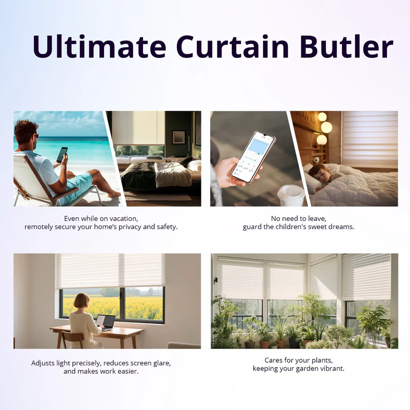 【Scheduled Curtain Operation】Set specific times for curtain opening and closing based on your routines, enhancing convenience in daily life.