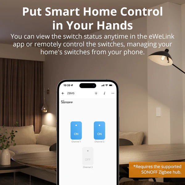 【Zigbee 3.0 Connectivity】ZBM5 is fully compatible with Sonoff Zigbee gateways and can be seamlessly integrated with Home Assistant via ZBDongle, delivering localized low-latency control for a stable and reliable whole-home smart network.