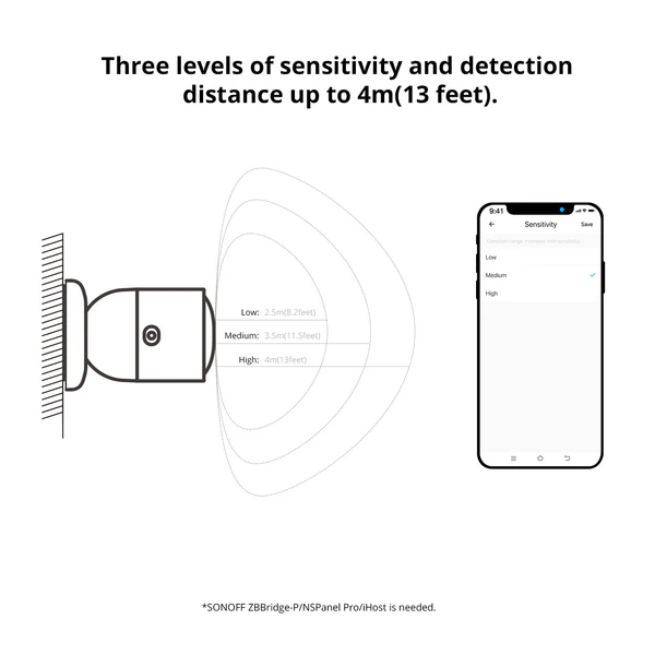 SNZB-06P utilizes 5.8GHz microwave radar to detect both moving and stationary individuals. It automatically turns on lights when you approach and keeps them on until you leave. A built-in light sensor ensures lights only activate when presence is detected in low-light conditions, helping you save energy. Compatible with Zigbee 3.0 hubs such as SONOFF NSPanel Pro, SONOFF iHost, ZB Bridge Pro, ZBDongle-E, and Echo Plus 2nd Gen.